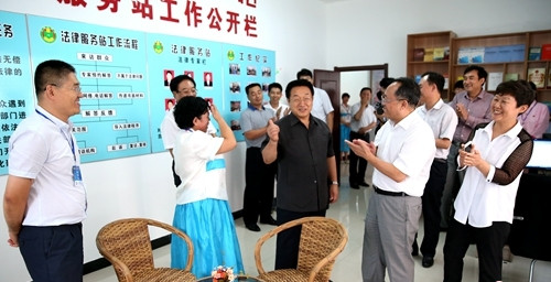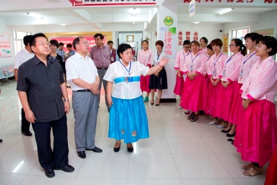 2015年8月20日,中国法学会党组成员、副会长张鸣起,在吉林省法学会会长李申学、吉林省法学会名誉会长张金锁、吉林省法学会党组书记、常务副会长姜德志、延边州委常委、政法委书记康芳、吉林省法学会专职副会长傅铁铸的陪同下到珲春市、延吉市,考察延边州基层法律服务站建设情况。